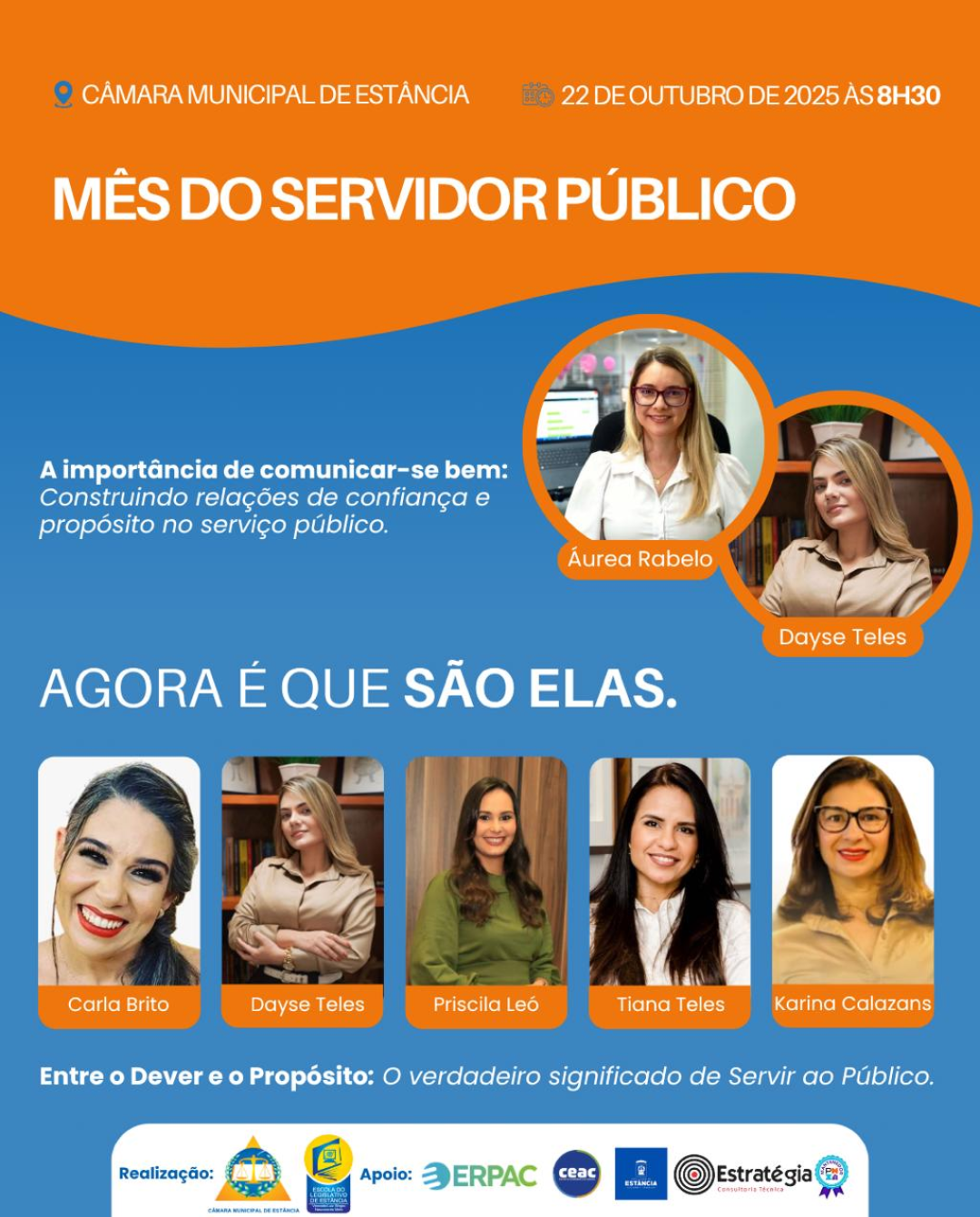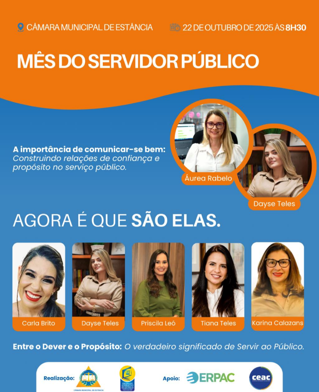 O evento é comemorativo ao Mês do Servidor e terá como palestrantes: Carla Brito, Dayse Teles, Priscila Leó, Tiana Teles e Karina Calazans.